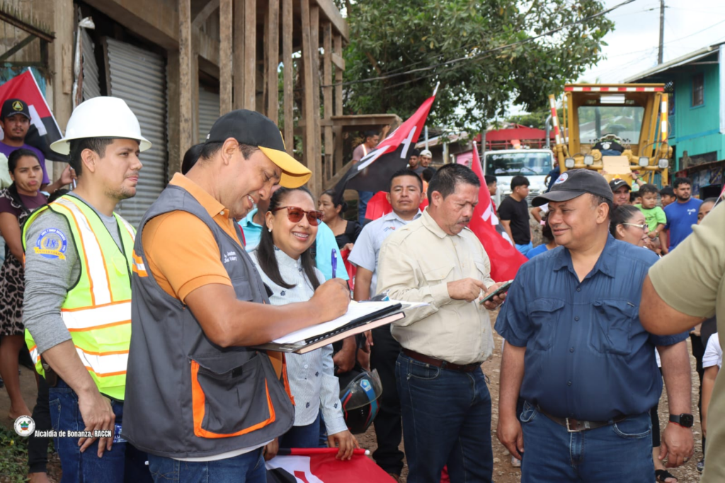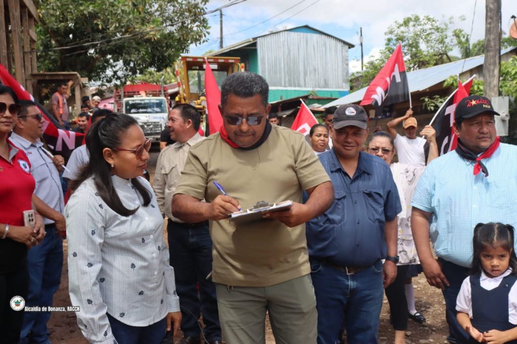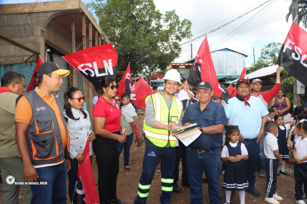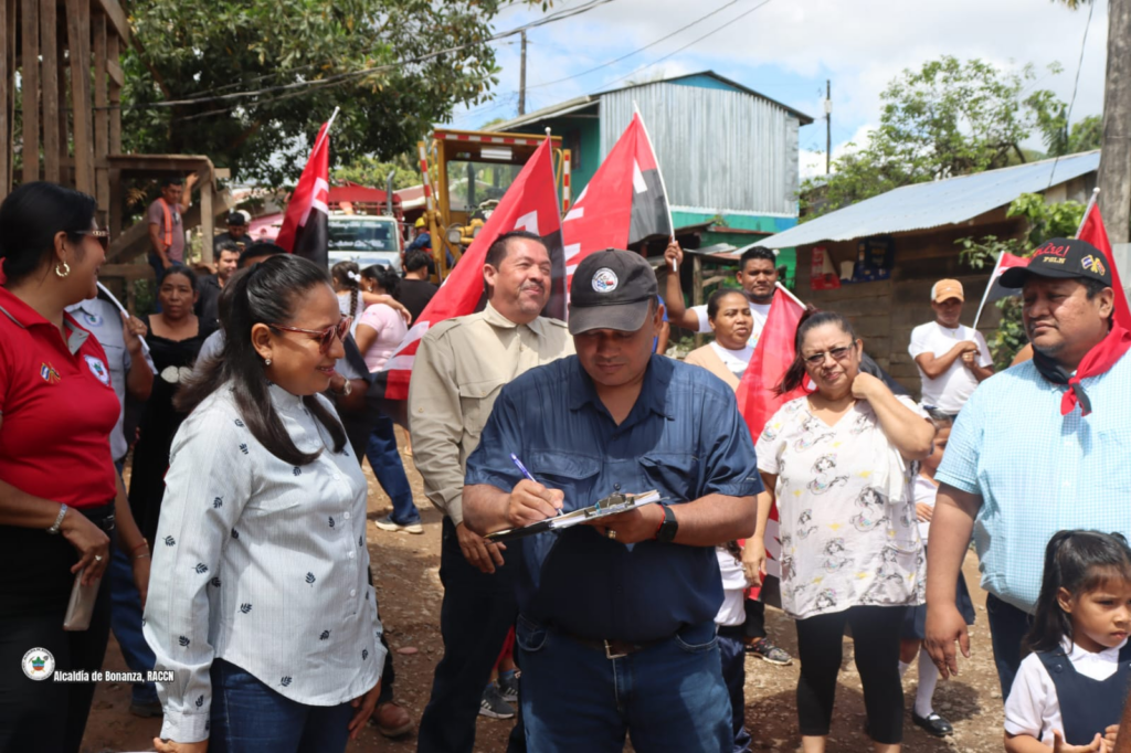 El Gobierno Municipal de Bonanza, en coordinación con el Gobierno Regional, dirigido por el Msc. Carlos Alemán Cunningham, y el acompañamiento del Secretario Político Departamental Dr. Noel Espinoza, realizaron la entrega de sitio para el inicio del proyecto de construcción de 345 metros lineales de adoquinado en el barrio Los Cocos.
